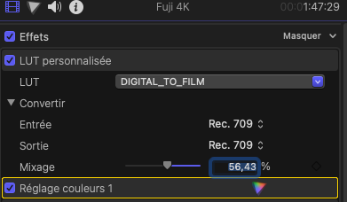 Et en plus du LUT j’affine l’image avec quelques réglages pour apporter un peu de contraste ou au contraire, déboucher un peu