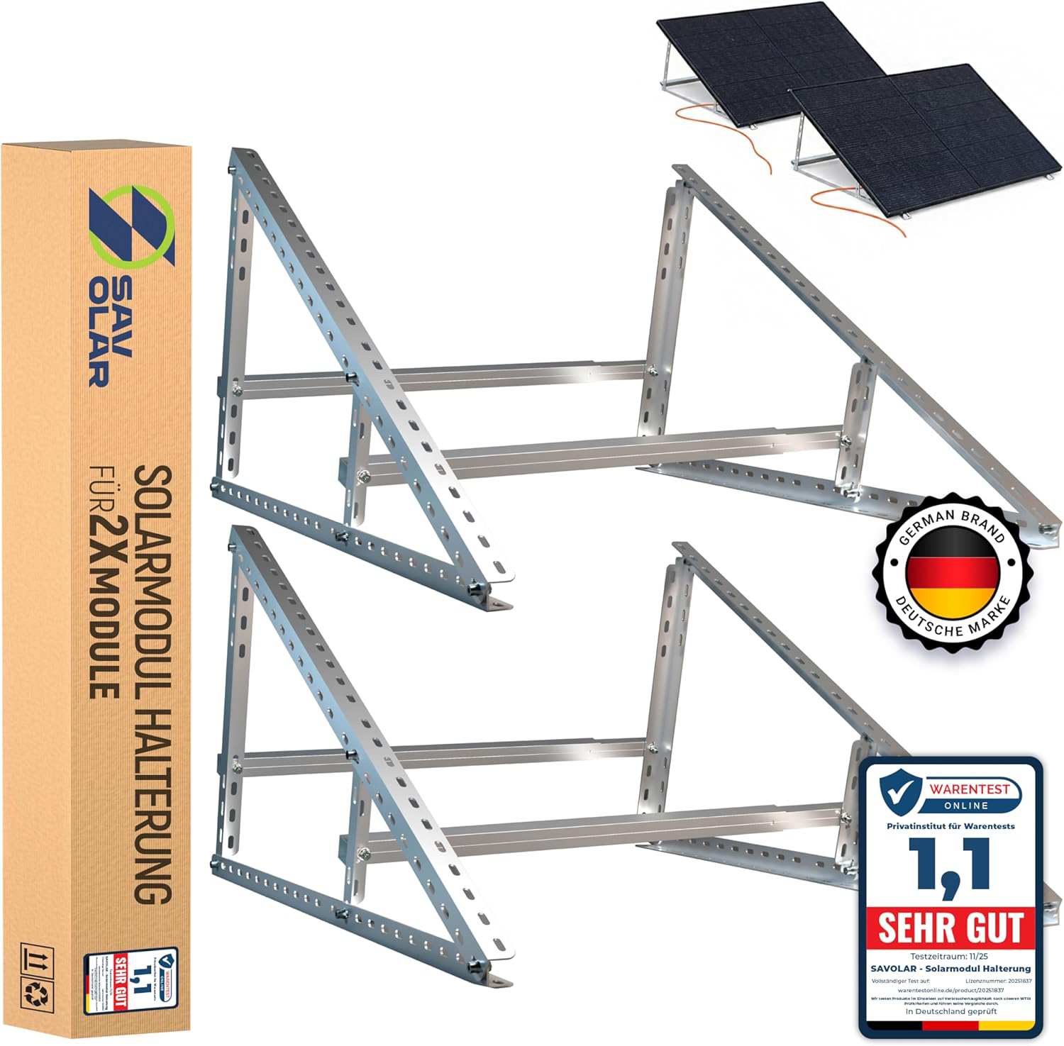 Afin de limiter les frais, vous pouvez par exemple partir sur ce type de support. Ce lot de deux est orientable de 0 à 90° et en aluminium. Il sera tout adapté pour soutenir des panneaux solaires dans votre jardin ou sur votre terrasse.