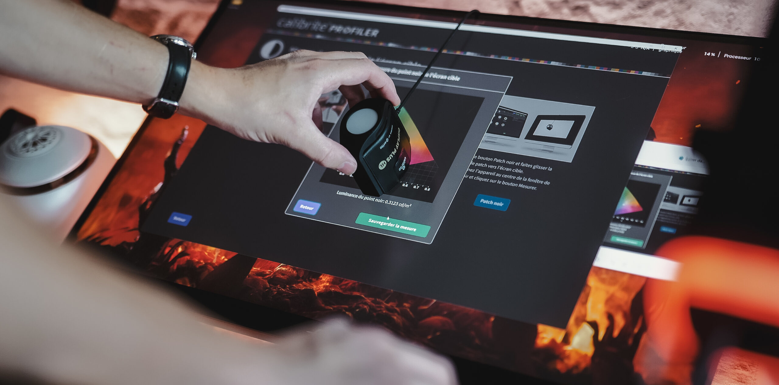 Pendant les réglages couleurs de l’écran. Le profil ICC est disponible gratuitement dans cet article.