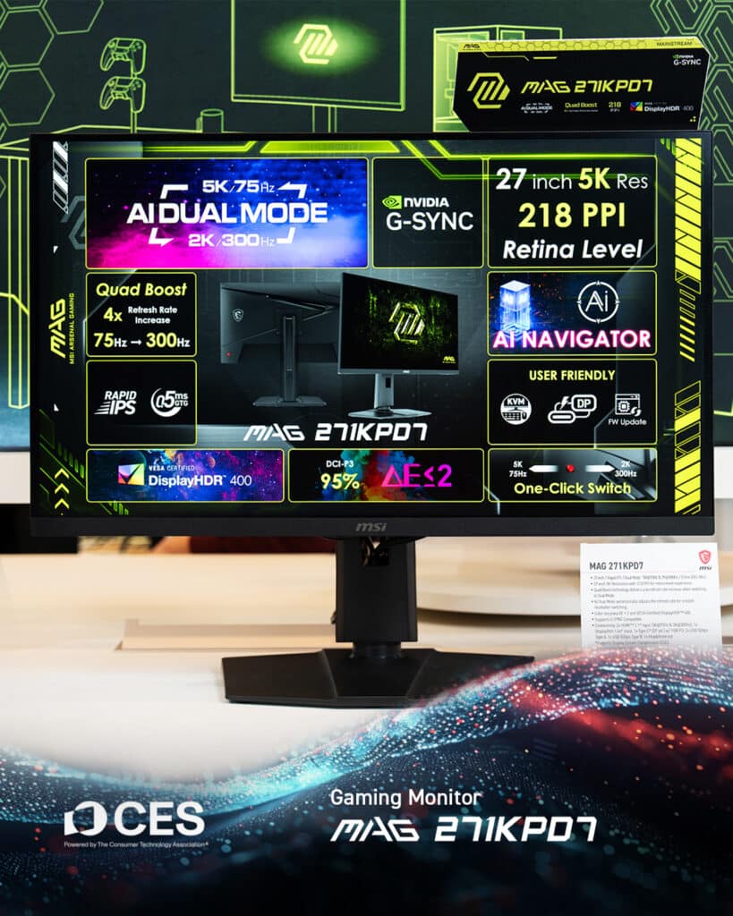 À présent, prenons quelques instants pour parler du deuxième moniteur 5K annoncé, le MAG 271KPD7. Moins évolué que le MPG 271KRAW16, il n’en reste pas moins intéressant à différents niveaux.