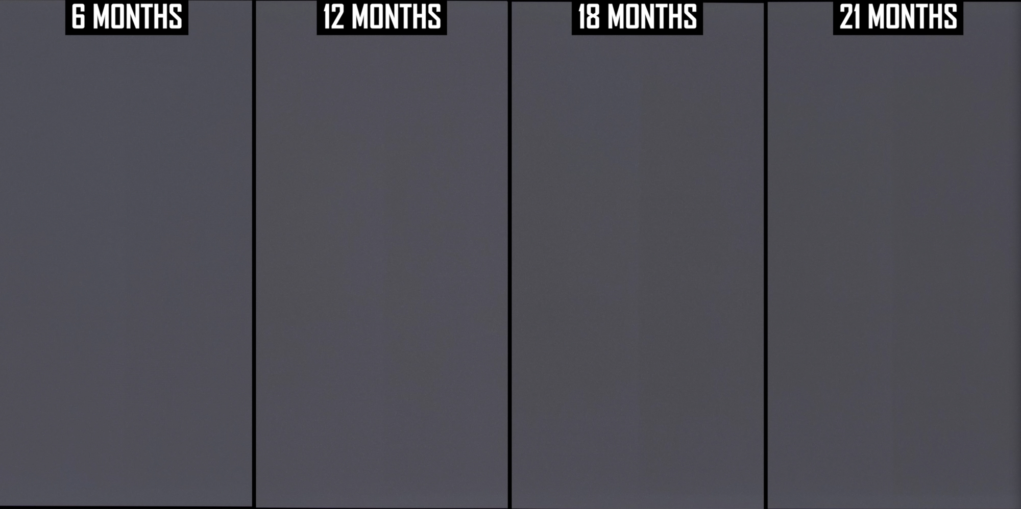 Pendant près de deux ans, l’écran a affiché des fenêtres statiques (bureautique, web, script) 8 à 10 heures par jour, 5 jours sur 7, à une luminosité fixe de 200 nits.