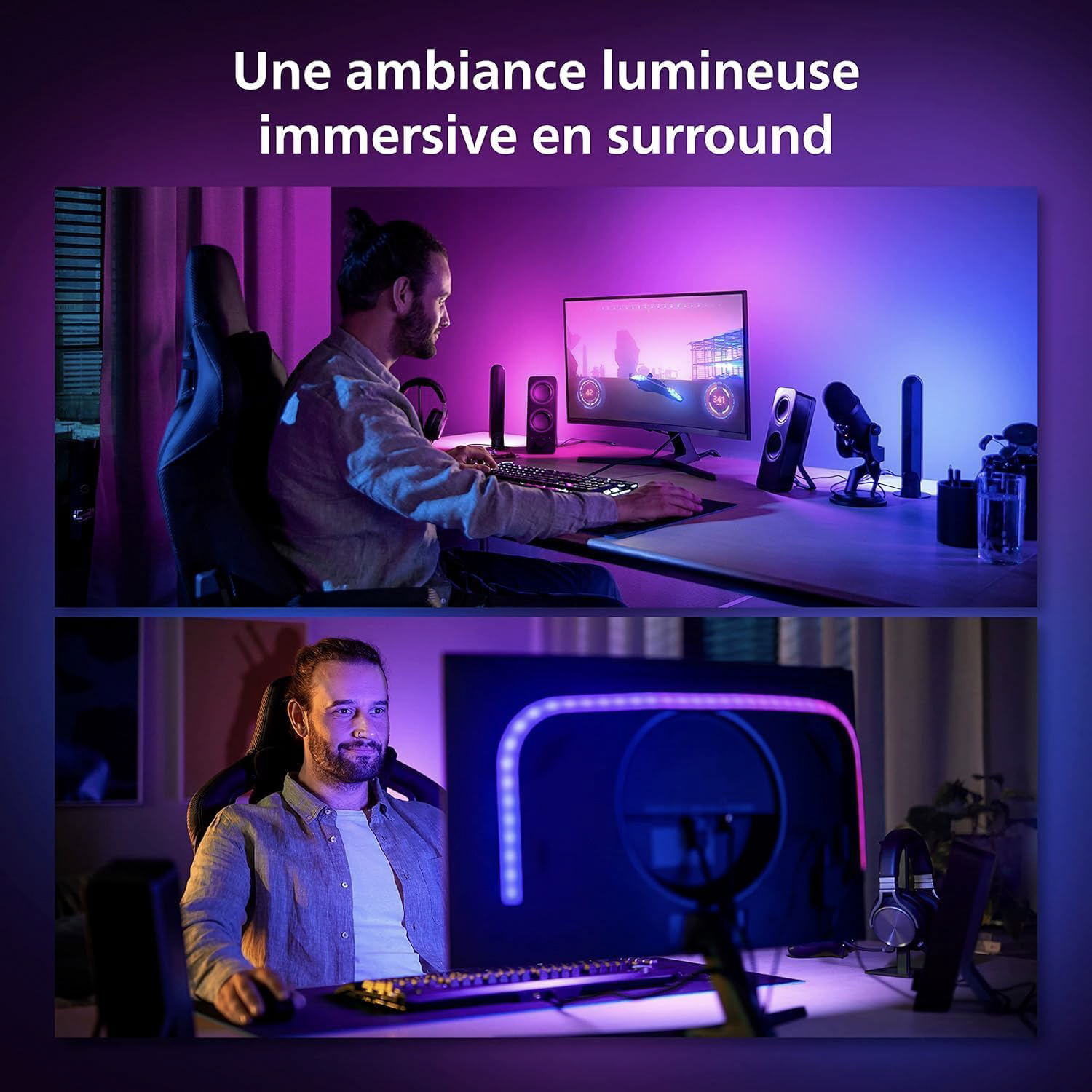 Si vous rêvez d’une ambiance lumineuse digne du cinéma dans votre salon ou votre bureau, c’est le moment de craquer : le kit Philips Hue Play Gradient Lightstrip pour moniteurs 32-34 pouces, accompagné de son indispensable Pont Hue, est actuellement proposé à 99 € seulement sur Amazon.